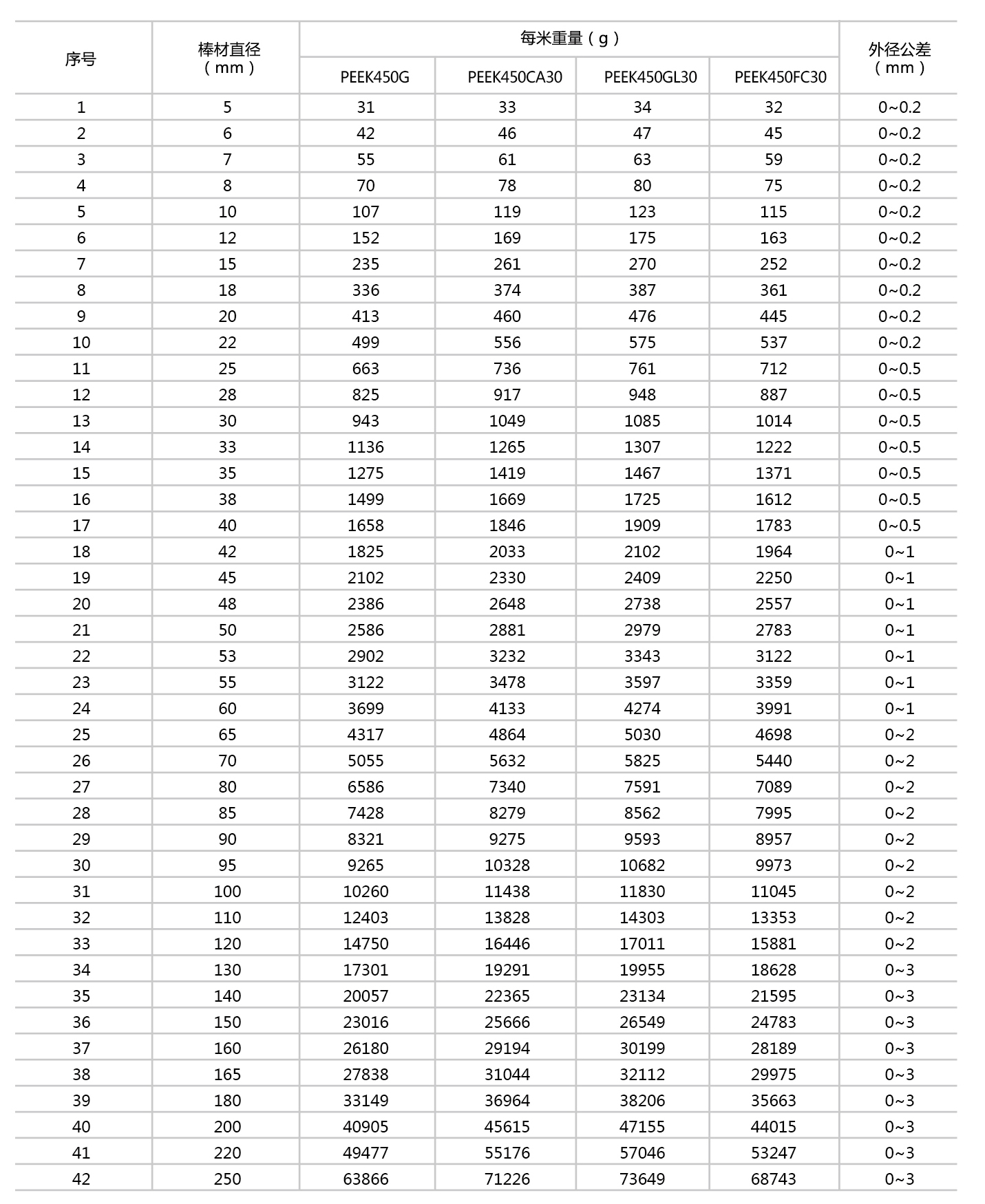 首頁 > PEEK棒材規(guī)格| 棒材規(guī)格表 | |||||